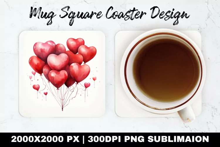 Heart Ballons Valentine Mug coaster | Coaster | Sublimation example image 1