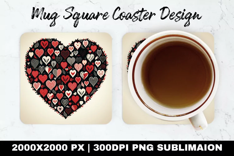Similar Design Products to Heart Valentine Mug coaster | Coaster | Sublimation Design