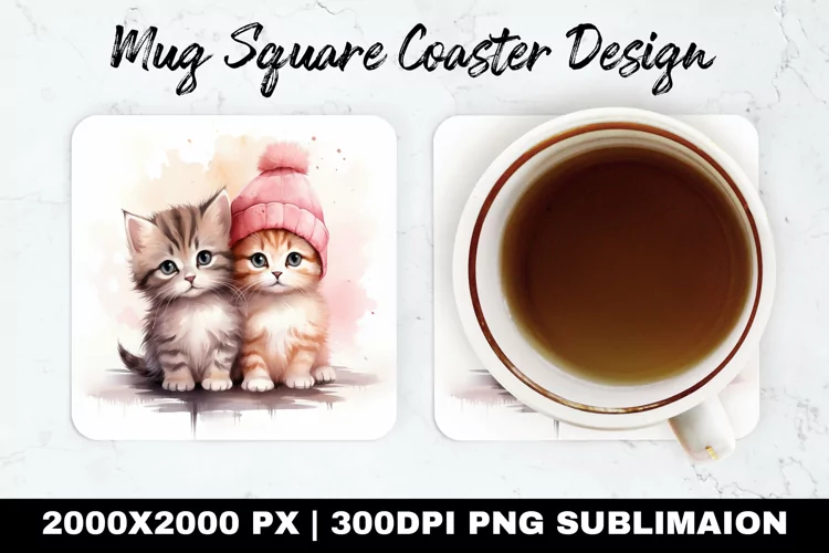 Similar Design Products to Cute Cats Valentine Mug coaster | Coaster Sublimation Design