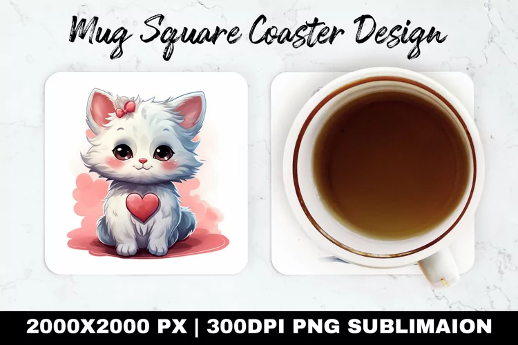 Similar Design Products to Cute Cat Valentine Mug coaster | Coaster |Sublimation Design