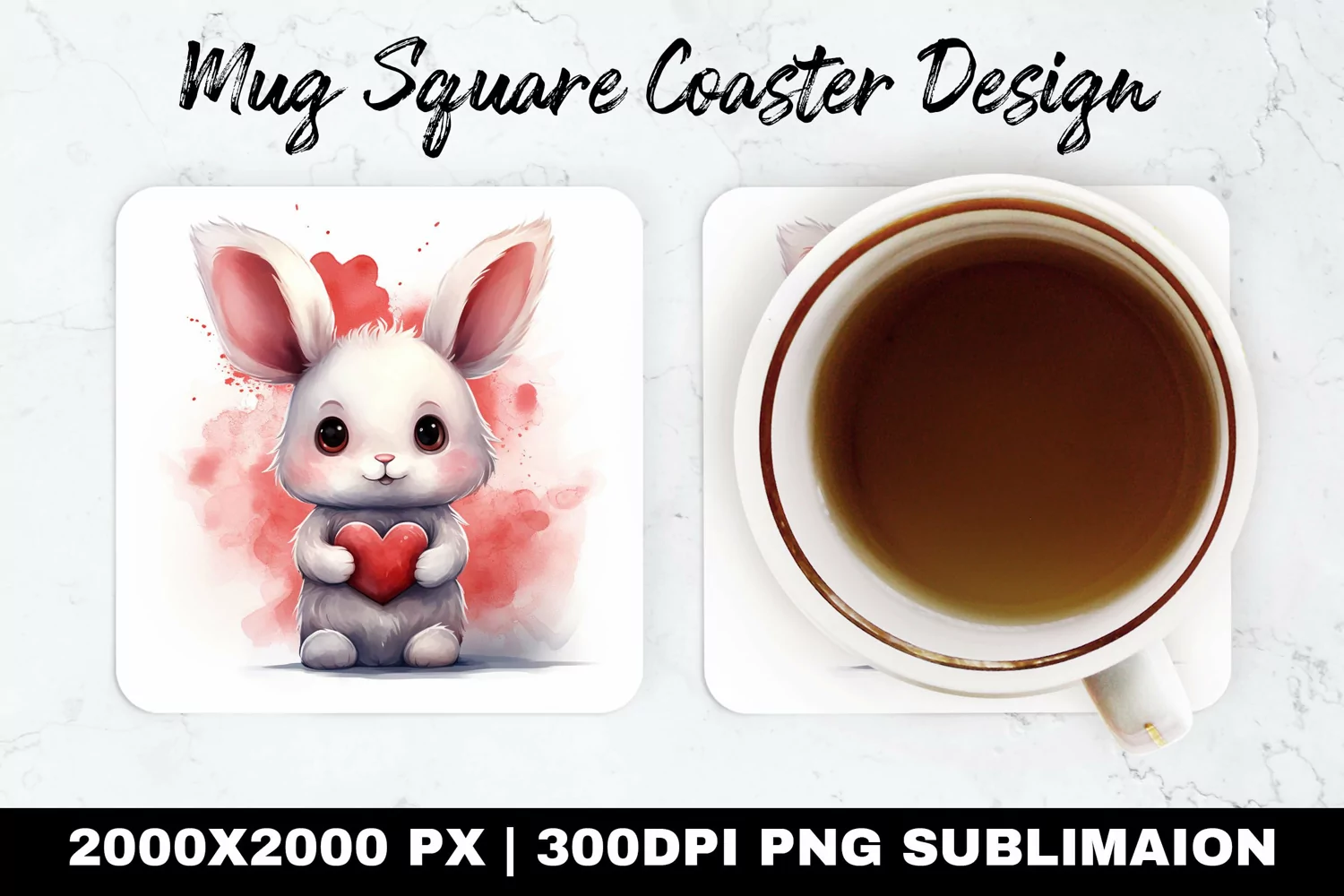 Cute Bunny Valentine Mug coaster | Coaster | Sublimation example image 1