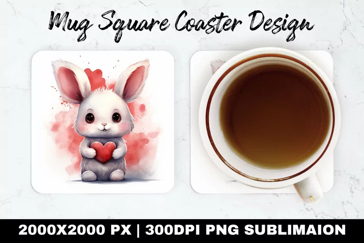 Similar Design Products to Cute Bunny Valentine Mug coaster | Coaster | Sublimation