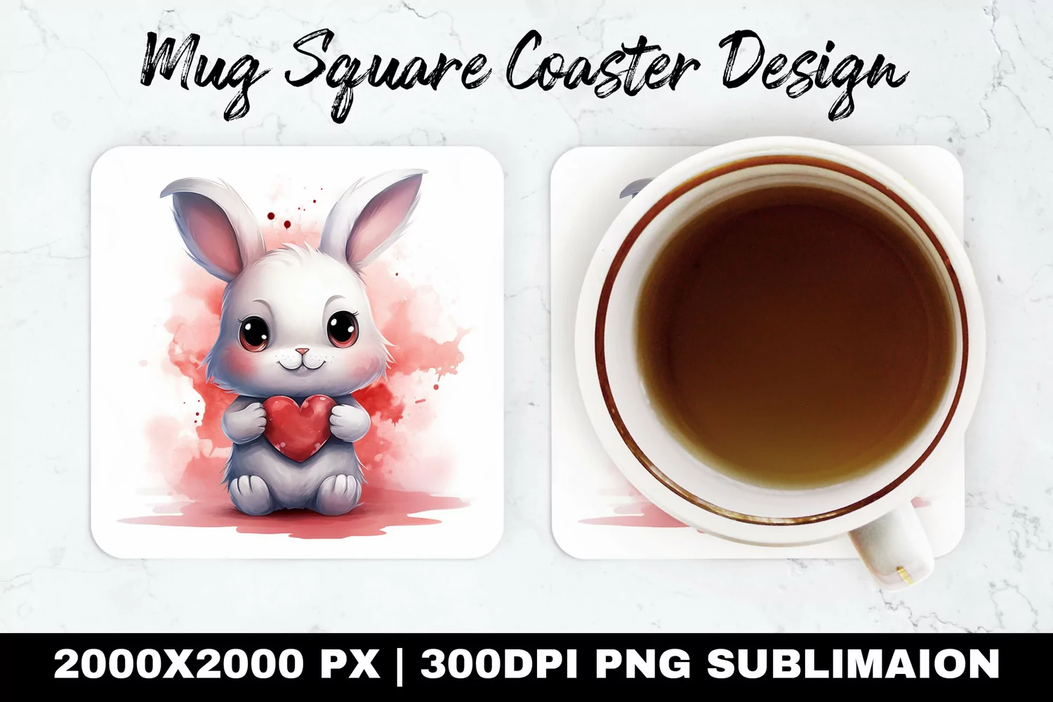 Cute Bunny Valentine Mug coaster | Coaster | Sublimation example image 1