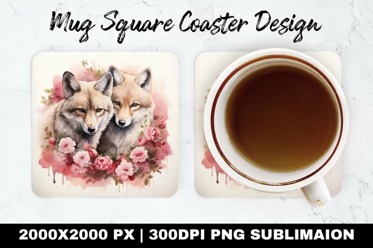 Similar Design Products to Wolf Valentine Mug coaster | Coaster | Sublimation Design