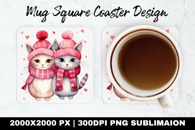 Similar Design Products to Cute Cats Valentine Mug coaster | Coaster | Sublimation