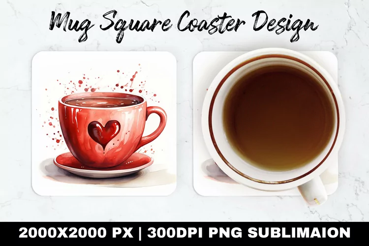 Similar Design Products to Coffee Cup Valentine Mug coaster | Coaster | Sublimation