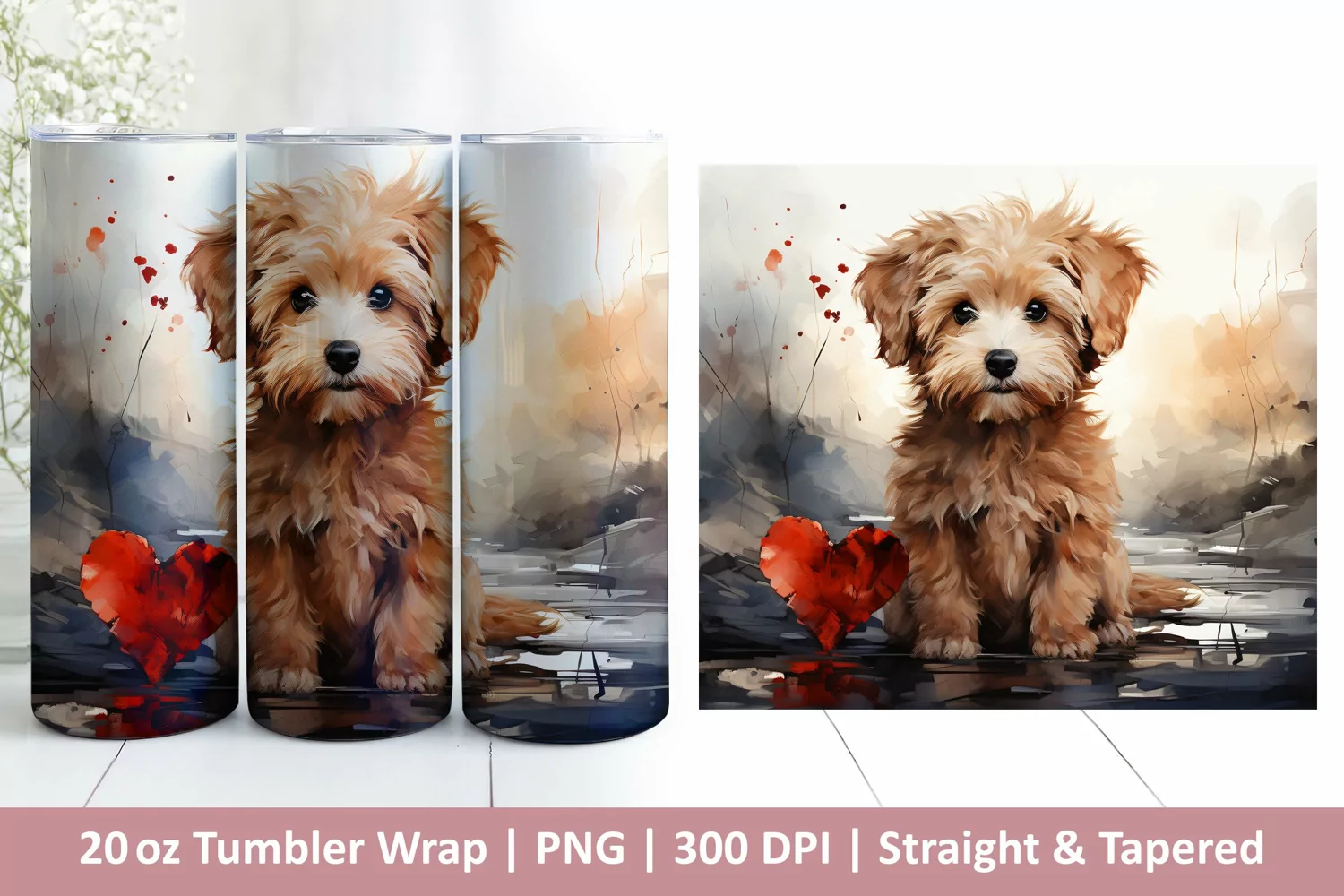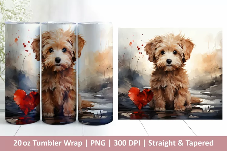 Cute Dog Tumbler Wrap | Valentines Tumbler | 3D Sublimation