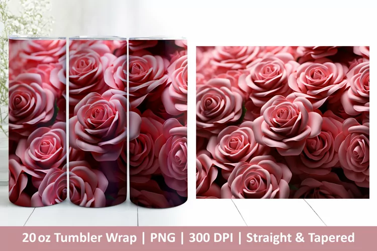 3D Rose Tumbler Wrap | Valentines Tumbler | 3D Sublimation