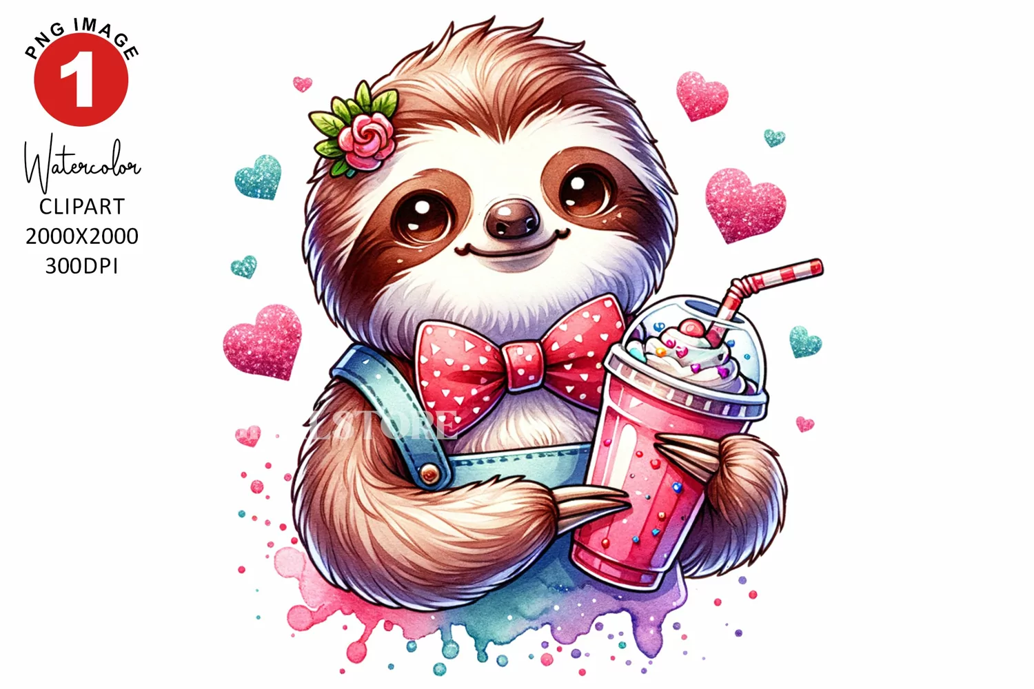 Sloth Valentine Clipart | Watercolor Clipart | Sublimation example image 1