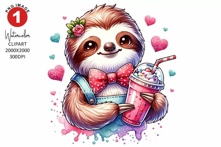Similar Design Products to Sloth Valentine Clipart | Watercolor Clipart | Sublimation