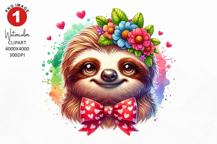 Similar Design Products to Sloth Valentine Clipart | Watercolor Clipart | Sublimation