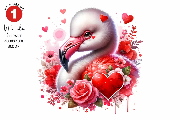 Valentines Day Flamingo Clipart | Watercolor Sublimation