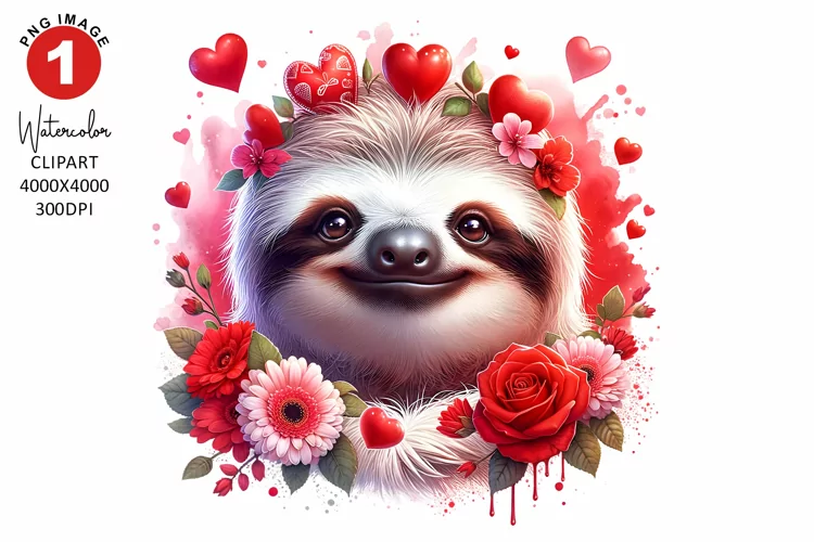 Valentines Day Sloth Clipart | Watercolor Sublimation