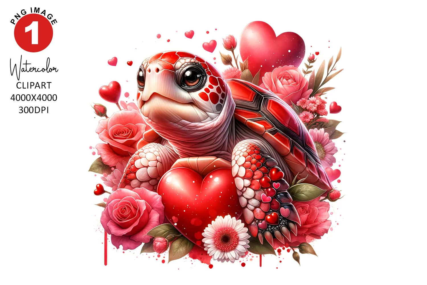 Valentines Day Turtle Clipart | Watercolor Sublimation example image 1