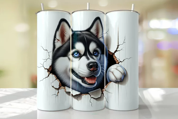 Similar Design Products to Siberian Husky Peeking from the Cracked wall Tumbler Wrap