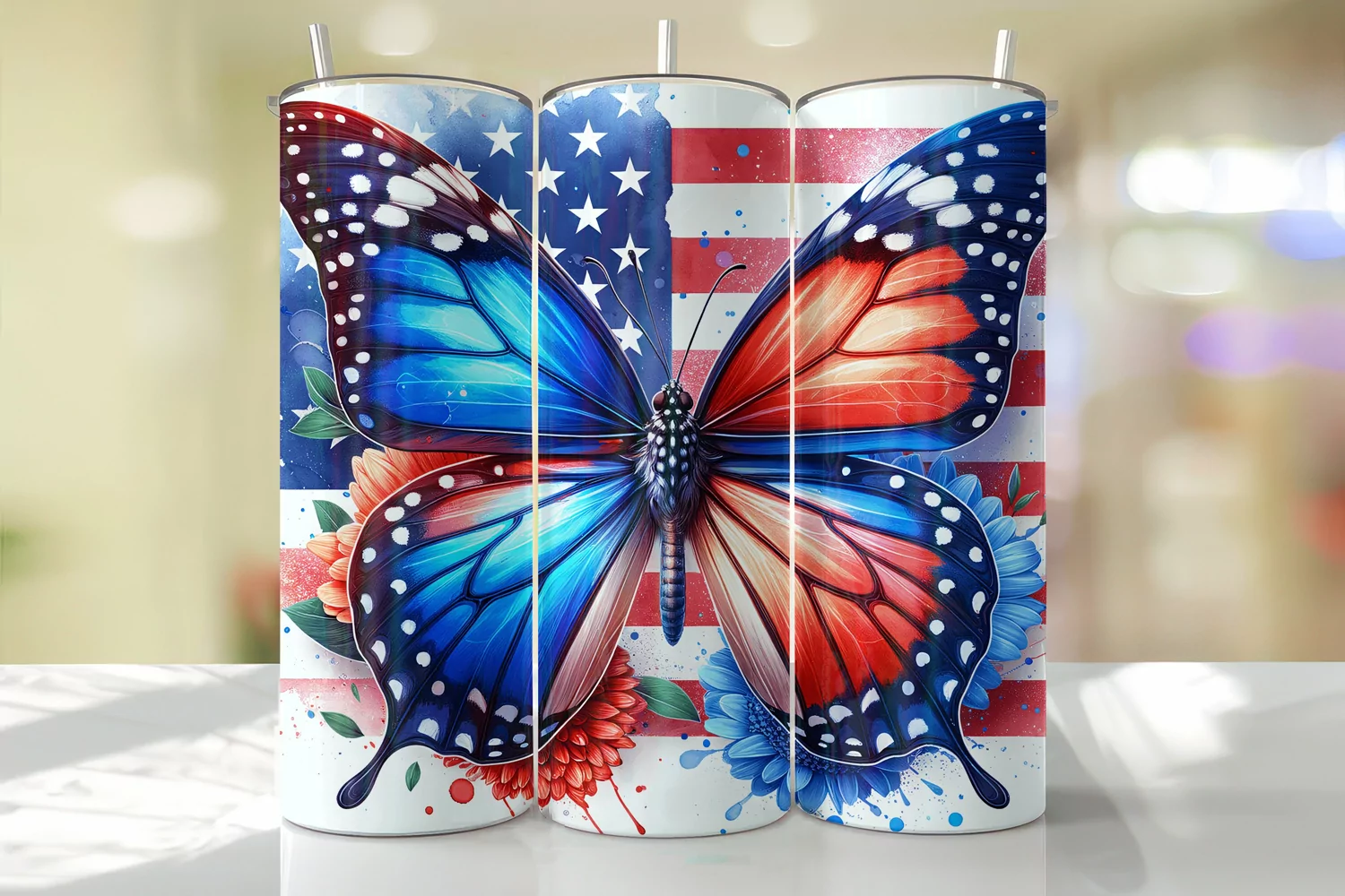 Butterfly with USA Flag Tumbler Wrap Sublimation Design