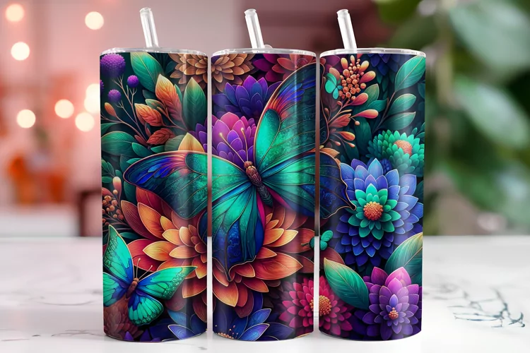 Similar Design Products to Butterflies Flowers Tumbler Wrap Sublimation, 20oz Tumbler W