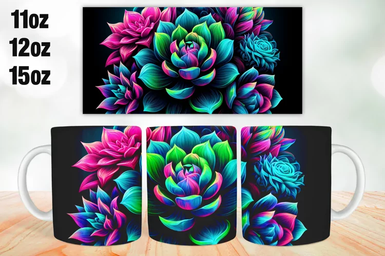Neon Florals Mug Wrap, Sublimation 11oz, 12oz, 15oz