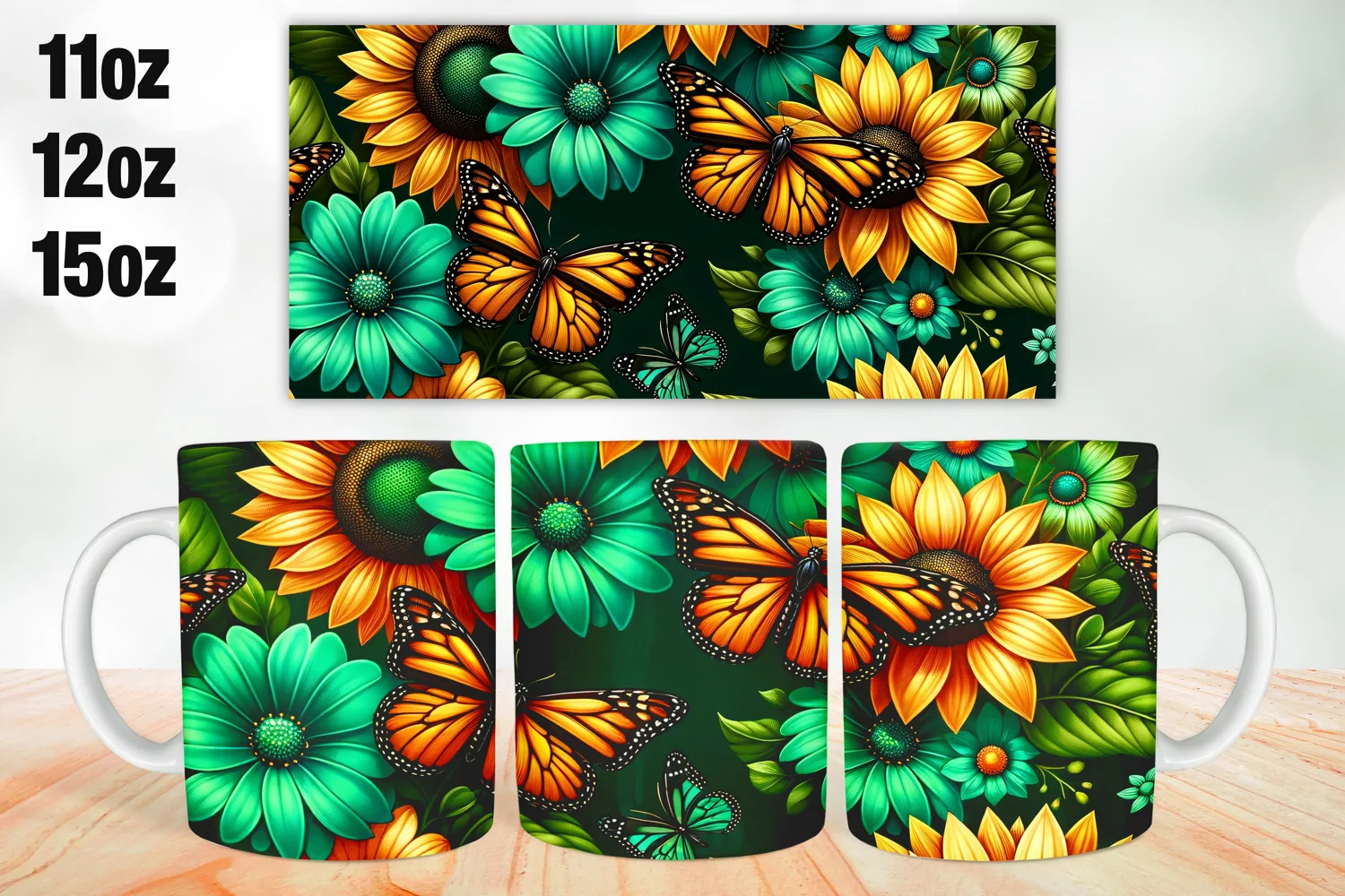 Similar Design Products to Sunflowers Butterfly Mug Wrap, Sublimation 11oz, 12oz, 15oz