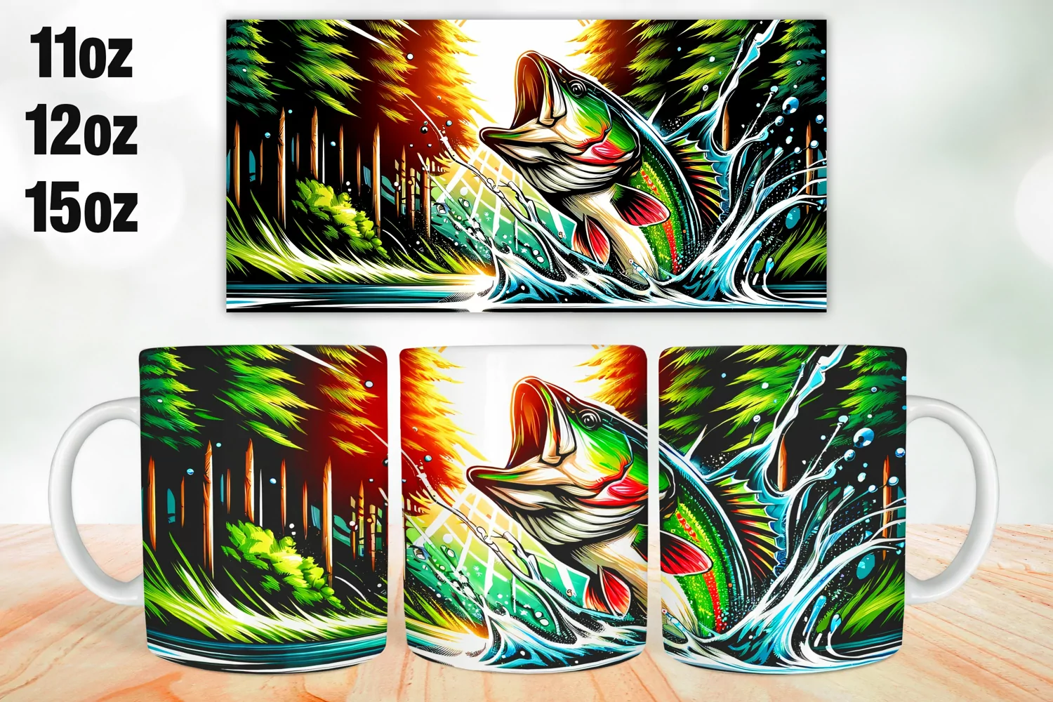 Fish Mug Wrap Sublimation 11oz, 12oz, 15oz