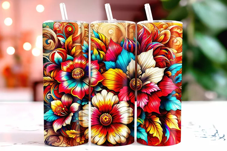 Flowers Tumbler Wrap Sublimation, 20oz Tumbler Wrap