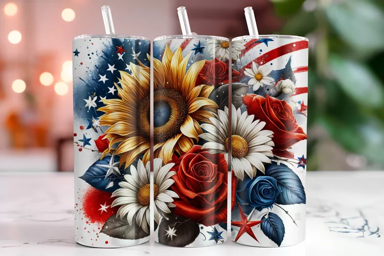 4th of July Flowers 20oz Tumbler Wrap Sublimation example image 1
