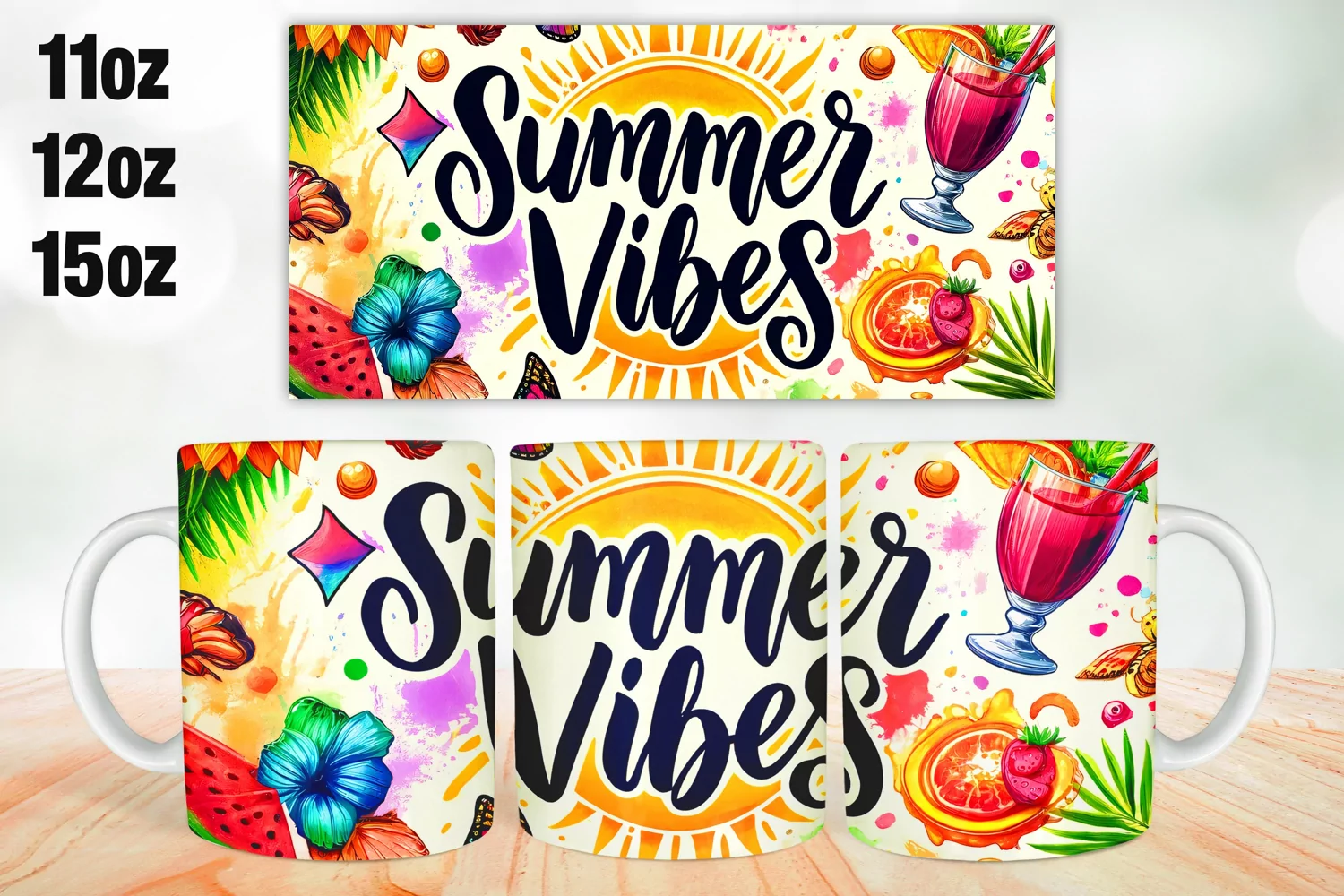 Summer Vibes Mug Wrap Sublimation 11oz, 12oz, 15oz example image 1