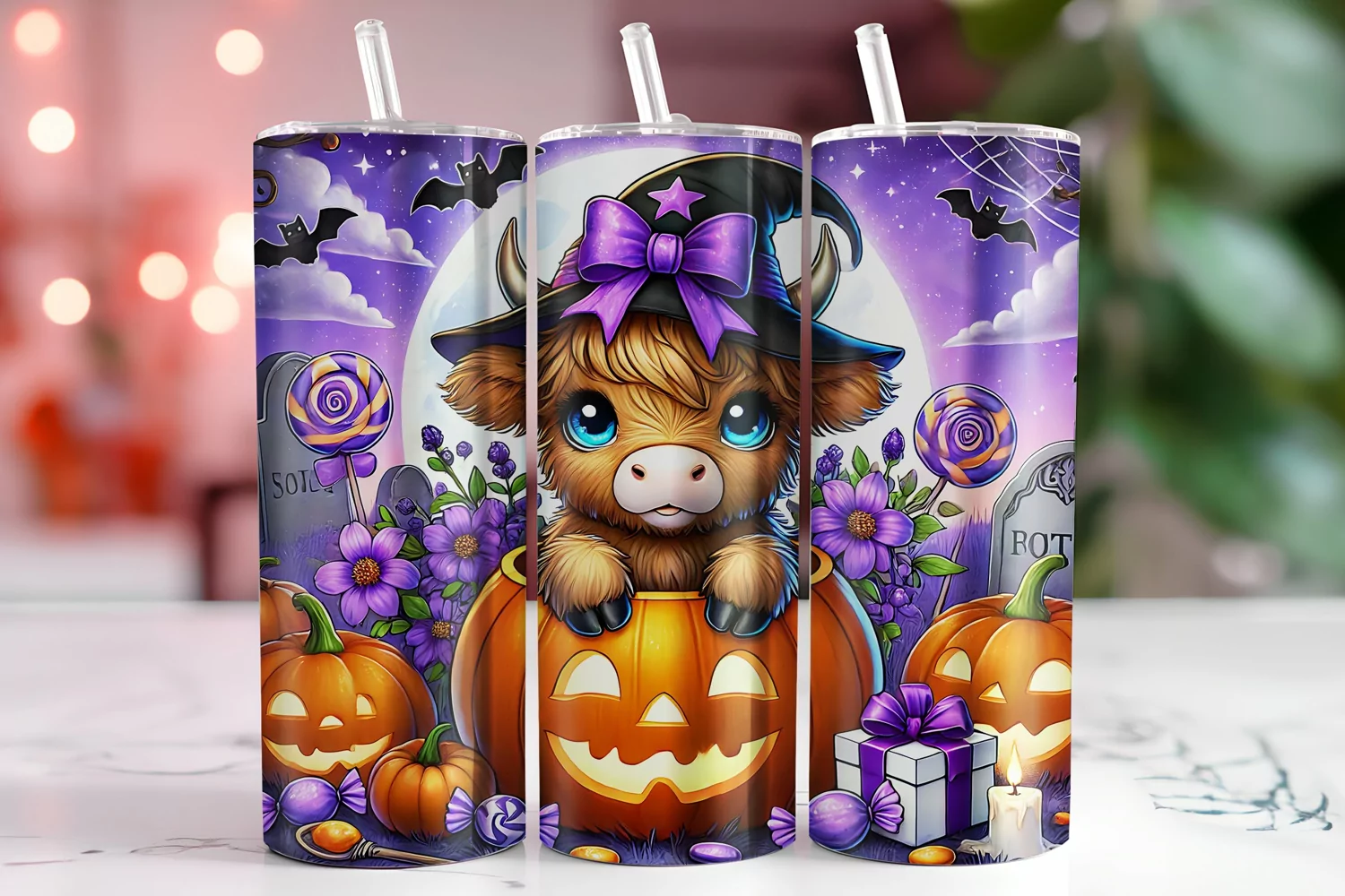 Similar Design Products to Halloween Highland Cow 20oz Tumbler Wrap Sublimation