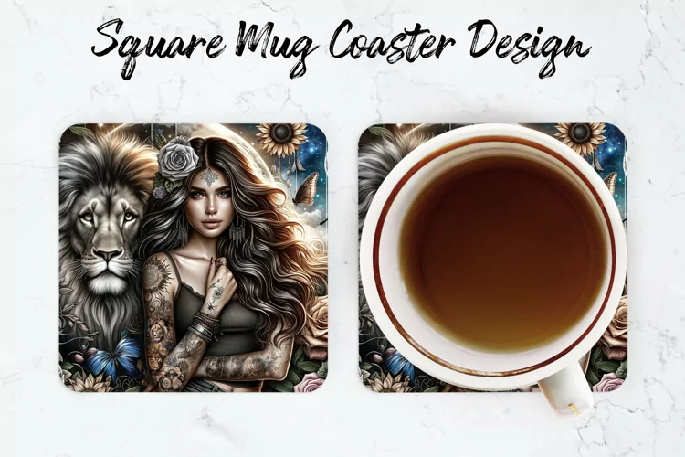 Girl with Lion Mug coaster | Coaster | Sublimation Design