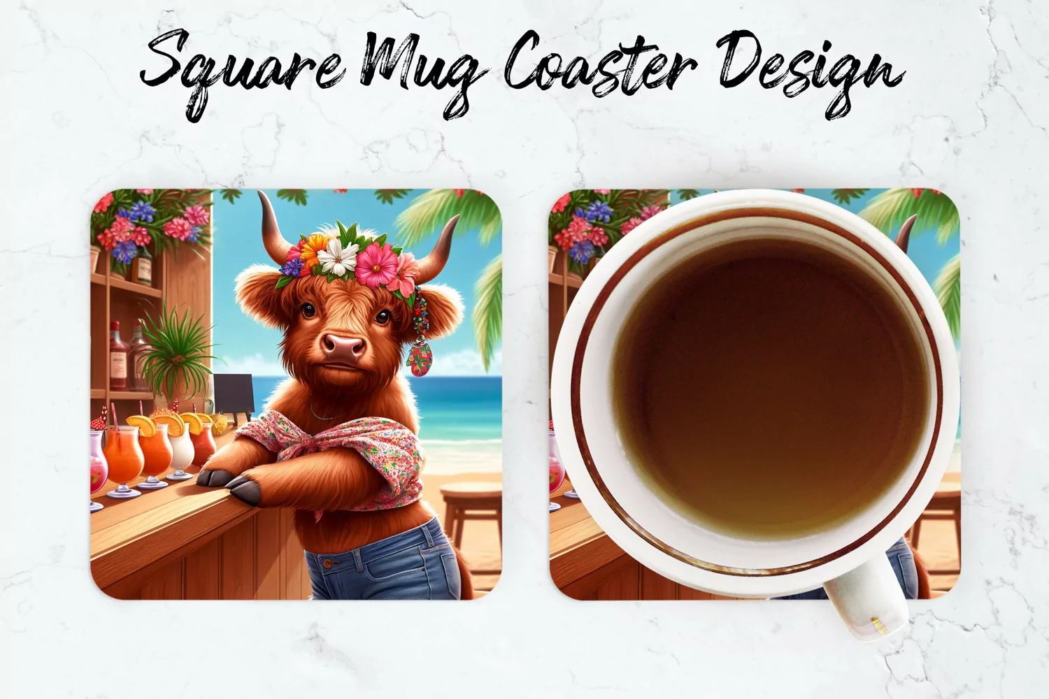 Highland Cow Mug coaster | Coaster | Sublimation Design example image 1