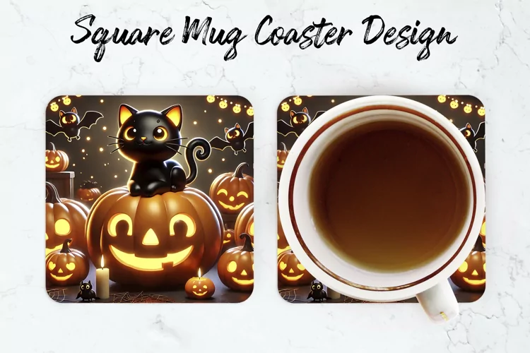 Similar Design Products to Halloween Cat Mug coaster | Coaster | Sublimation Design