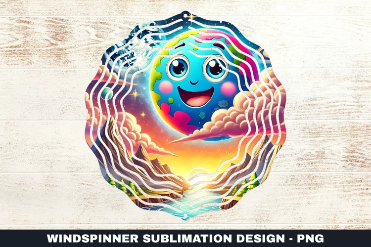 Colorful Planet Wind Spinner Sublimation Design example image 1