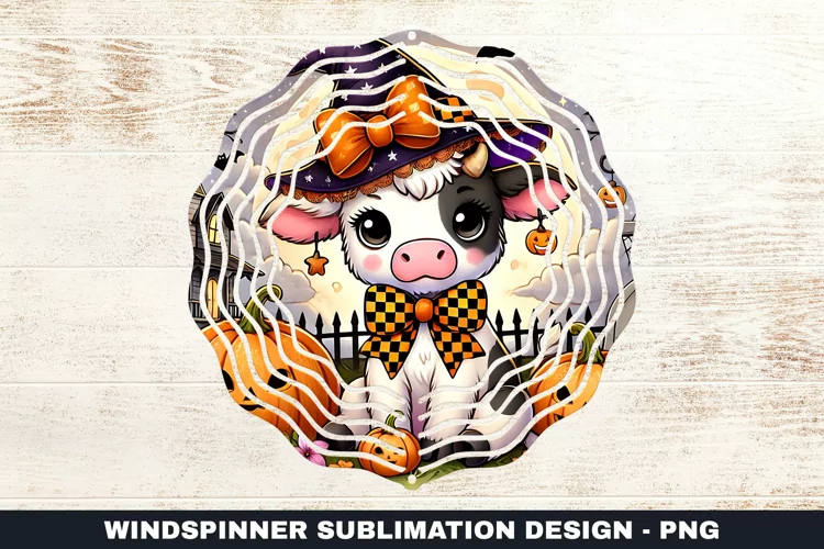 Halloween Cow Wind Spinner Sublimation Design example image 1