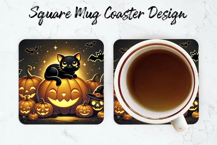 Similar Design Products to Halloween Cat Mug coaster | Coaster | Sublimation Design