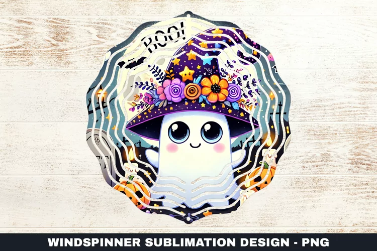 Halloween Boo Wind Spinner Sublimation Design example image 1