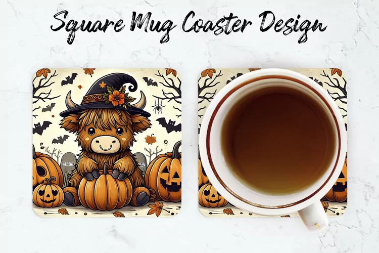 Similar Design Products to Halloween Highland Cow Mug coaster | Coaster | Sublimation