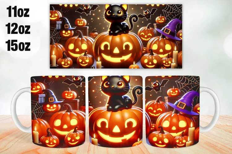 Halloween Cat Mug Wrap Sublimation 11oz, 12oz, 15oz