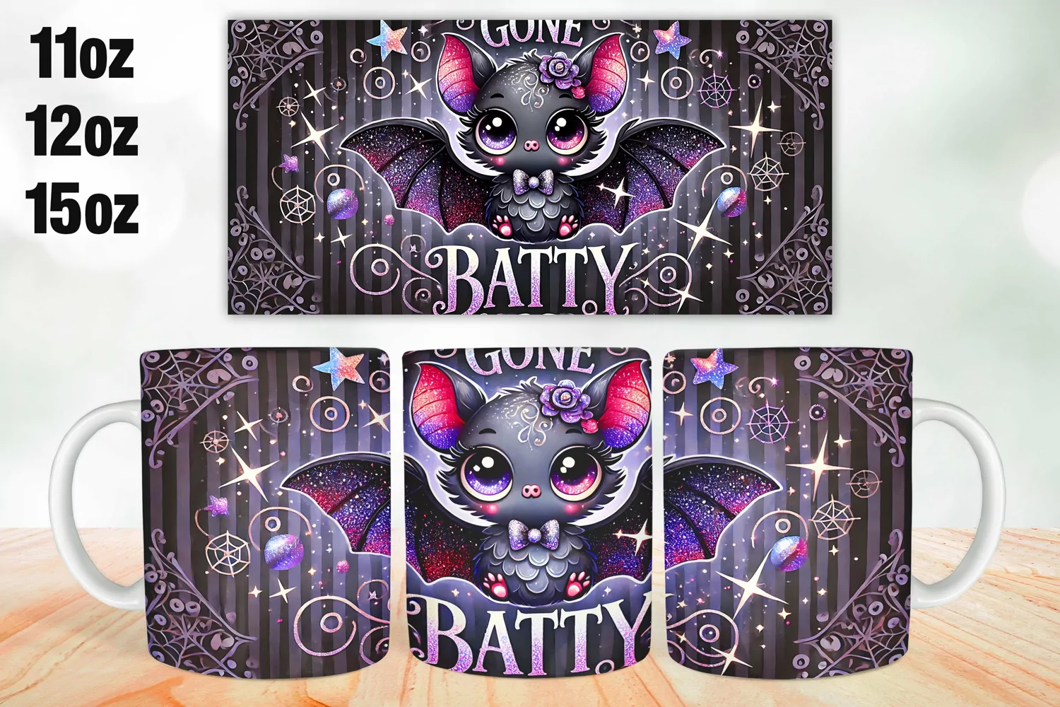Gone Batty Mug Wrap Sublimation 11oz, 12oz, 15oz example image 1