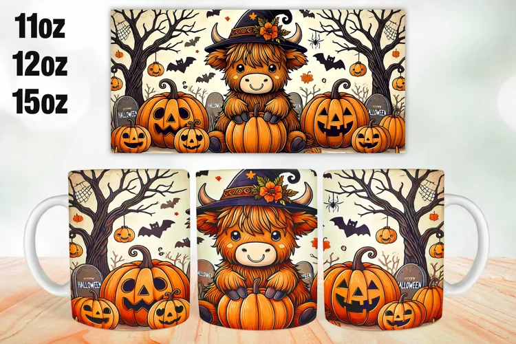 Similar Design Products to Halloween Highland Cow Mug Wrap Sublimation 11oz, 12oz, 15oz