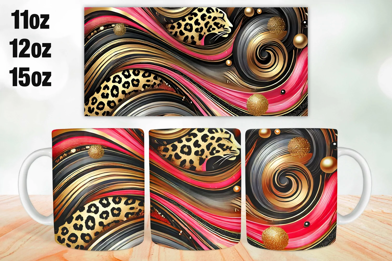 Fractal art & Cheetah Mug Wrap Sublimation 11oz, 12oz, 15oz