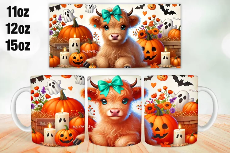 Similar Design Products to Halloween Highland Cow Mug Wrap Sublimation 11oz, 12oz, 15oz