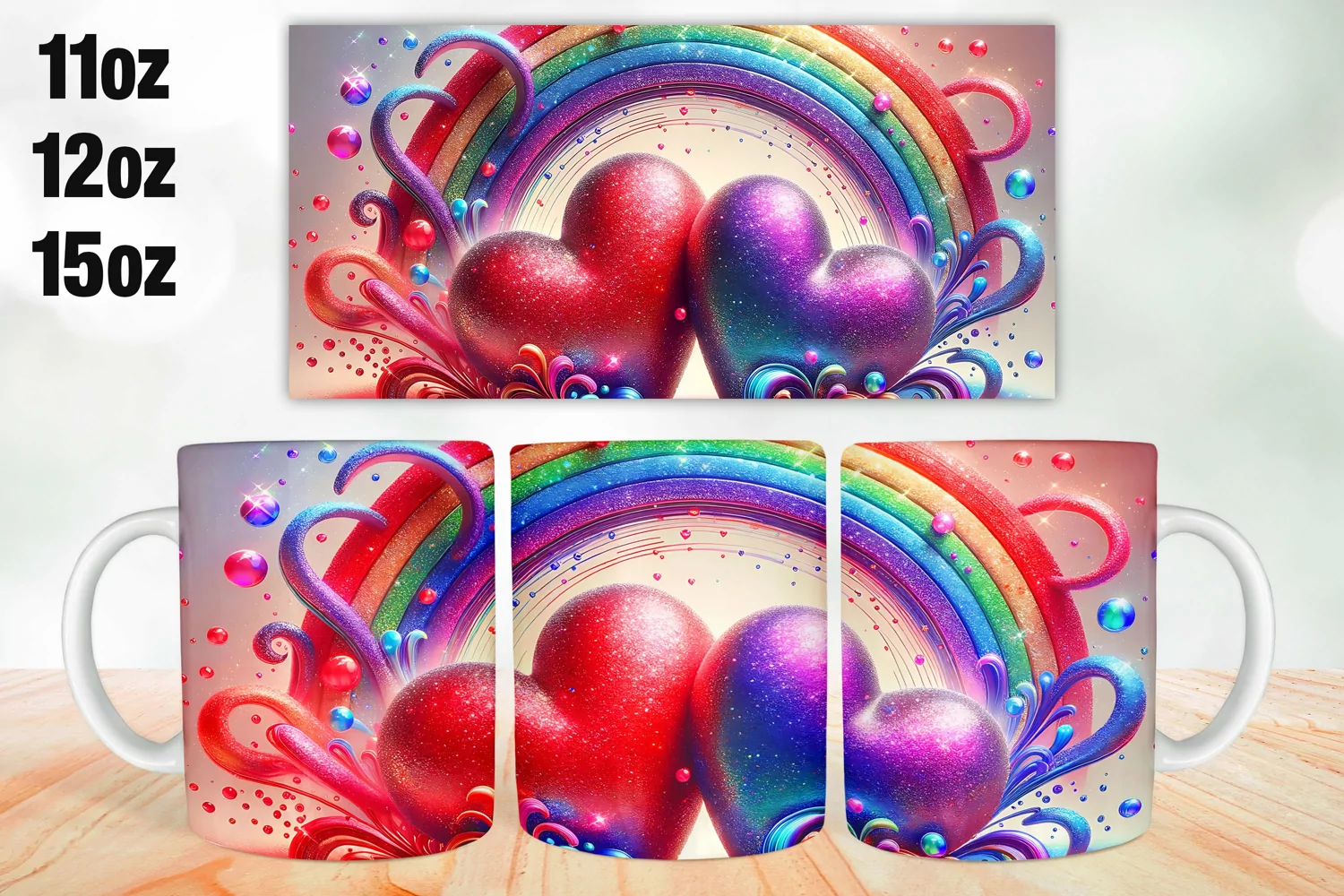 Similar Design Products to Hearts Mug Wrap Sublimation 11oz, 12oz, 15oz