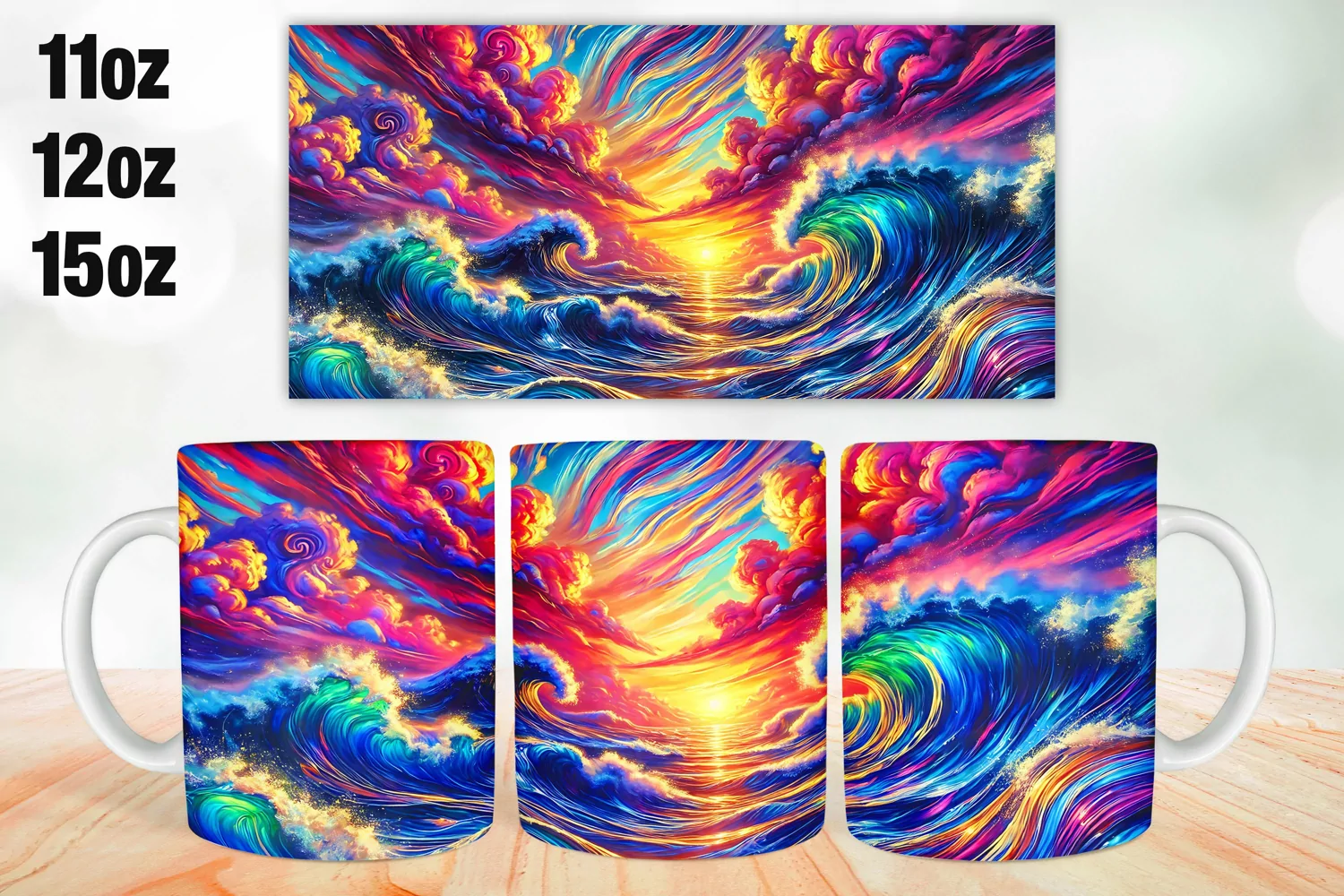 Colorful Waves Mug Wrap Sublimation 11oz, 12oz, 15oz