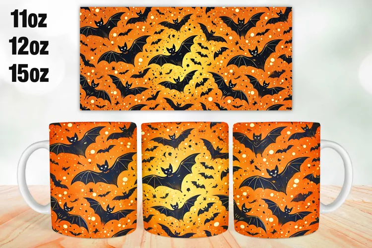 Halloween Bat Mug Wrap Sublimation 11oz, 12oz, 15oz