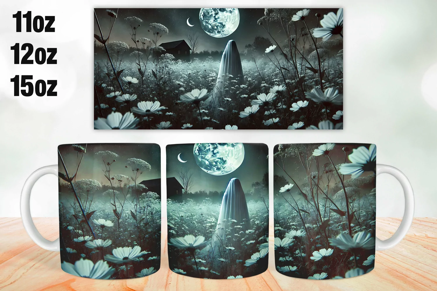 Halloween Ghost Mug Wrap Sublimation 11oz, 12oz, 15oz