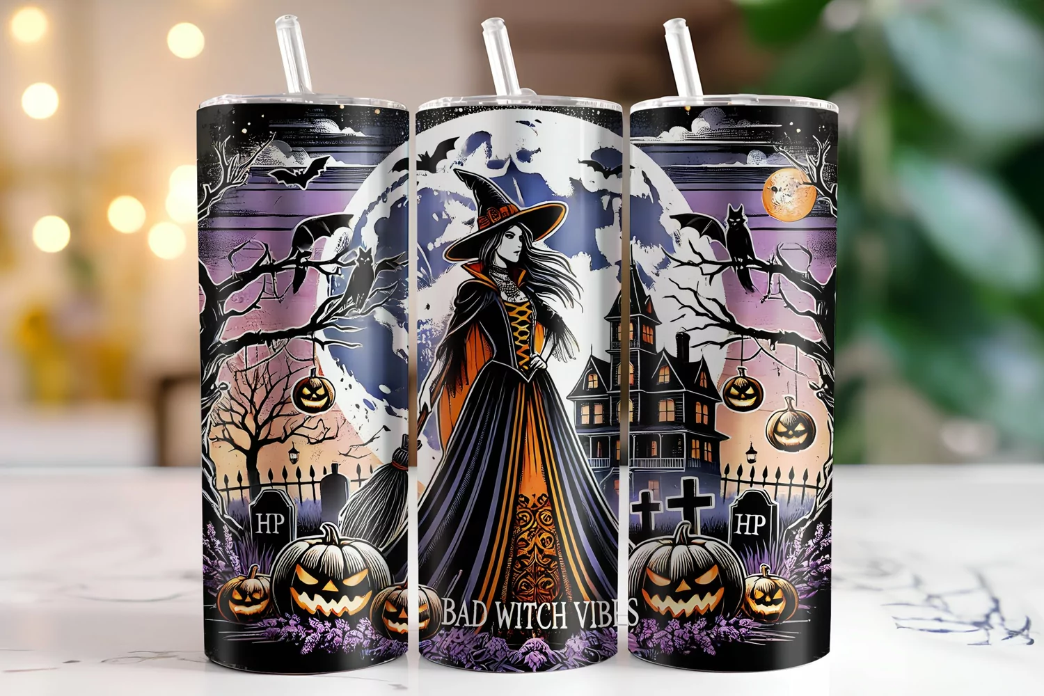 Halloween Bad Witch Vibes Tumbler Wrap | Sublimation example image 1