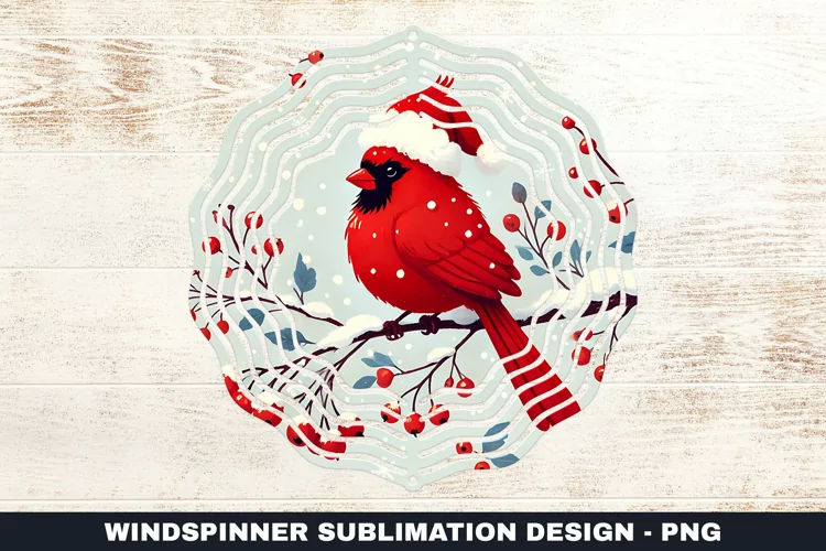 Christmas Cardinal Bird Wind Spinner Sublimation Design example image 1
