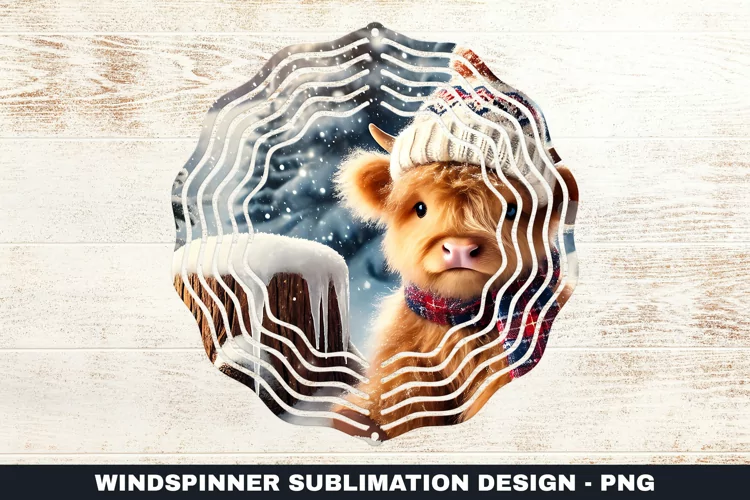 Christmas Highland Cow Wind Spinner Sublimation Design