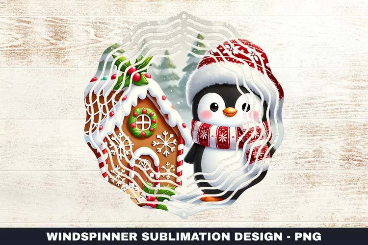 Christmas Penguin Wind Spinner Sublimation Design example image 1