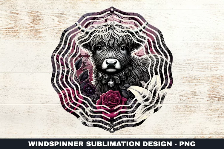 Highland Cow Wind Spinner Sublimation Design example image 1